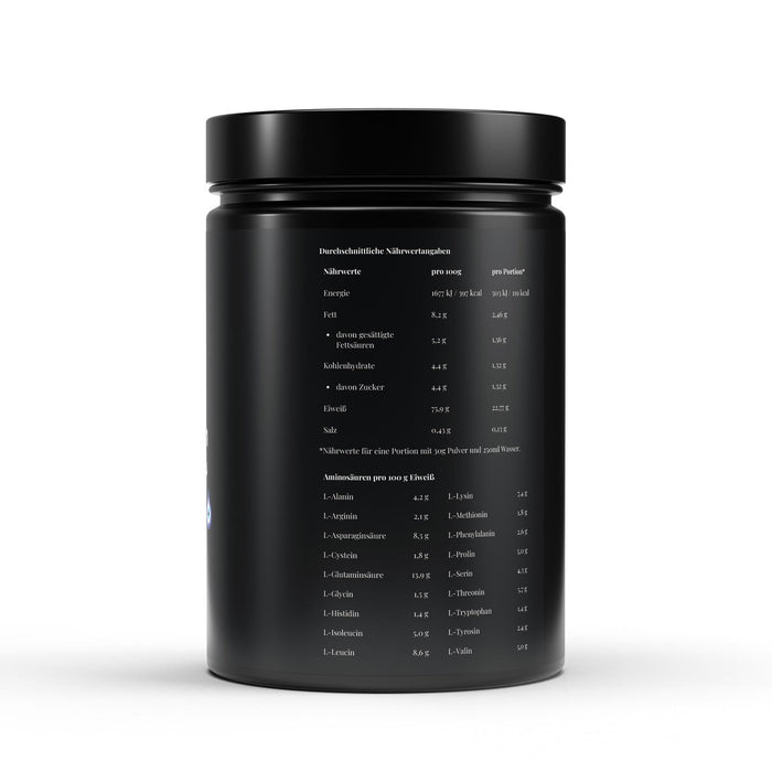 Molkenproteinkonzentrat (Enthält Sojalecithin) (97,63%), Xanthan (Verdickungsmittel), Vanillearoma (0,40%), Sucralose (Süßungsmittel), Milcheis-Aroma (0,10%).
